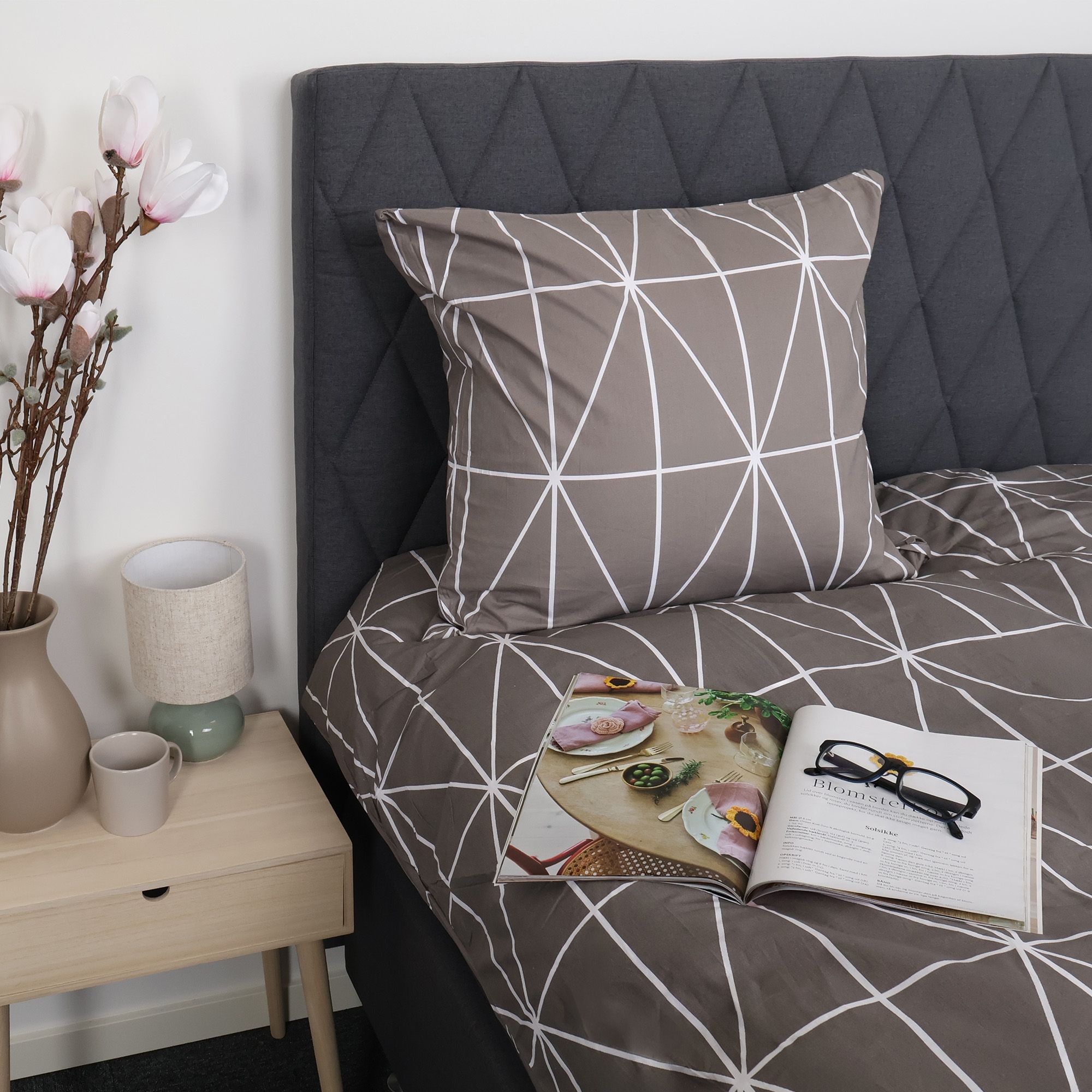 Giv soveværelset et stilrent og roligt udtryk med dette elegante sengetøj i bomuld fra Nordstrand Home. Det klassiske harlekin design i grå skaber en harmonisk atmosfære og passer perfekt ind i både moderne og nordisk indretning.