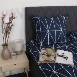 Giv soveværelset et stilrent og roligt udtryk med dette elegante sengetøj i bomuld fra Nordstrand Home. Det klassiske harlekin design i blå skaber en harmonisk atmosfære og passer perfekt ind i både moderne og nordisk indretning.