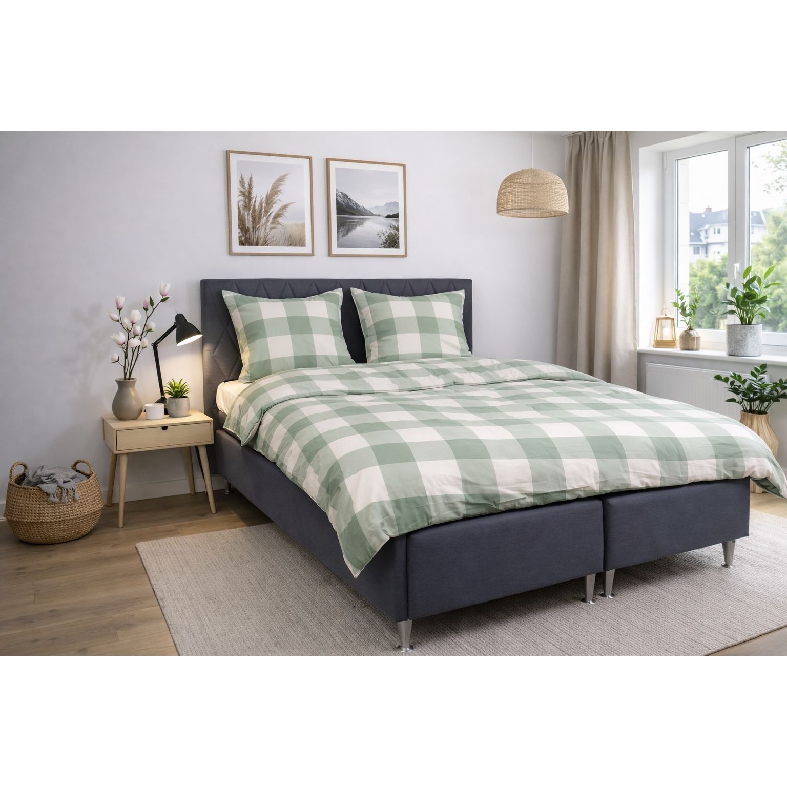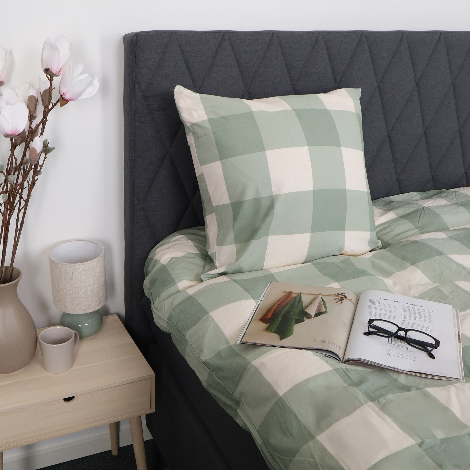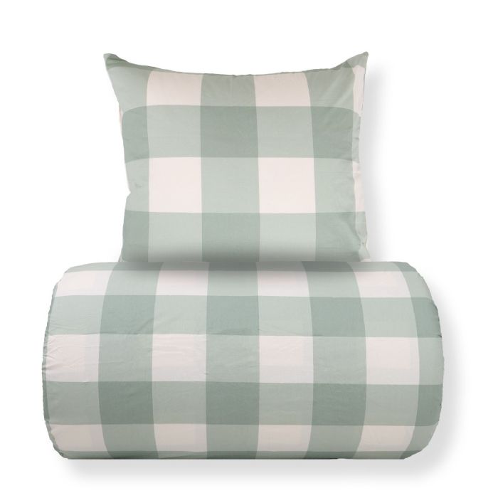 Sengetøj i bomuld med grønt ternet design