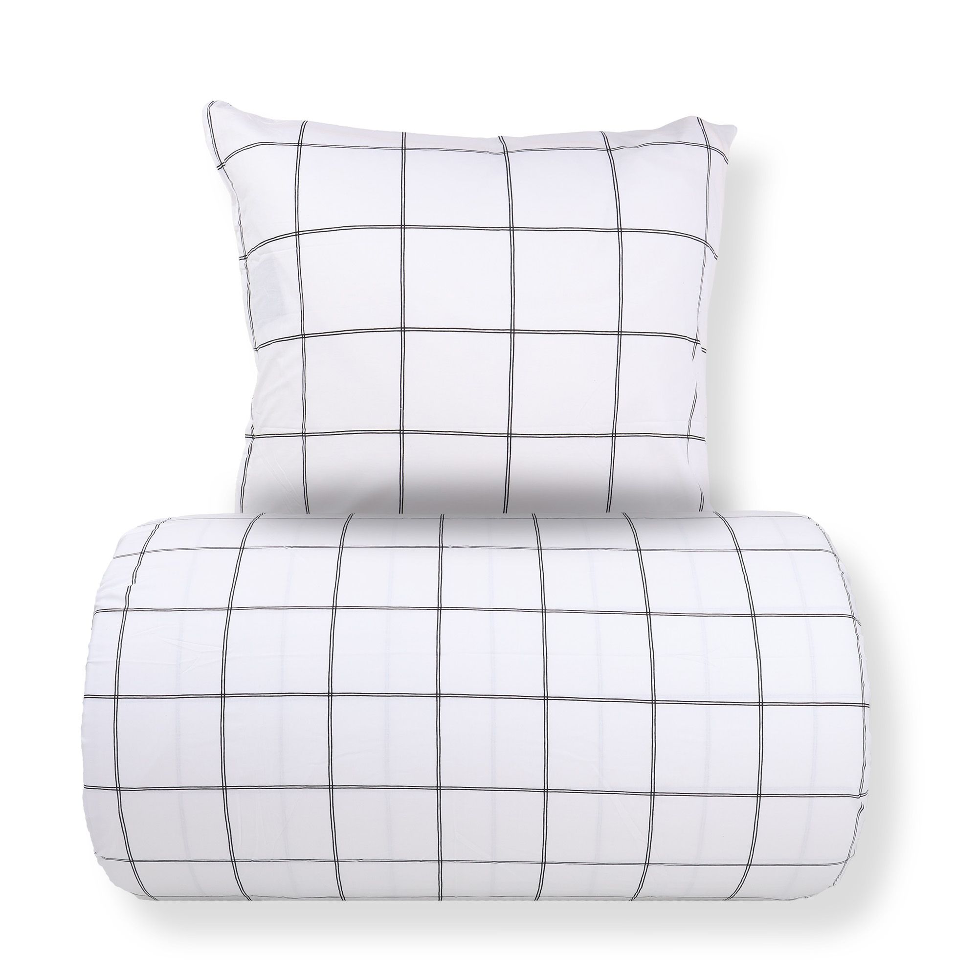 Sengetøj 140x220 cm - 100% bomuld - Hvid med sorte tern