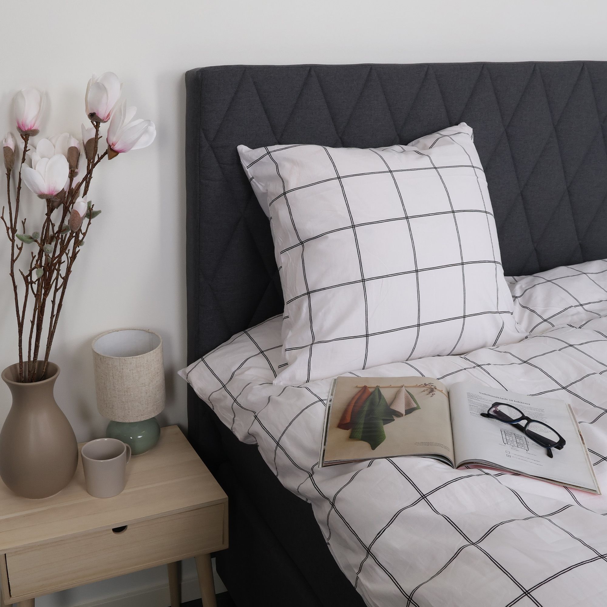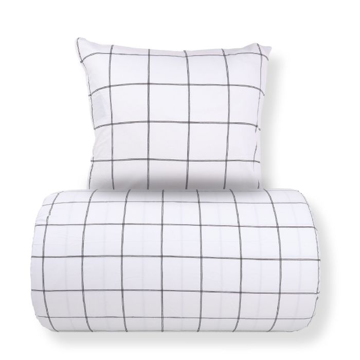Sengetøj i bomuld med hvidt ternet design