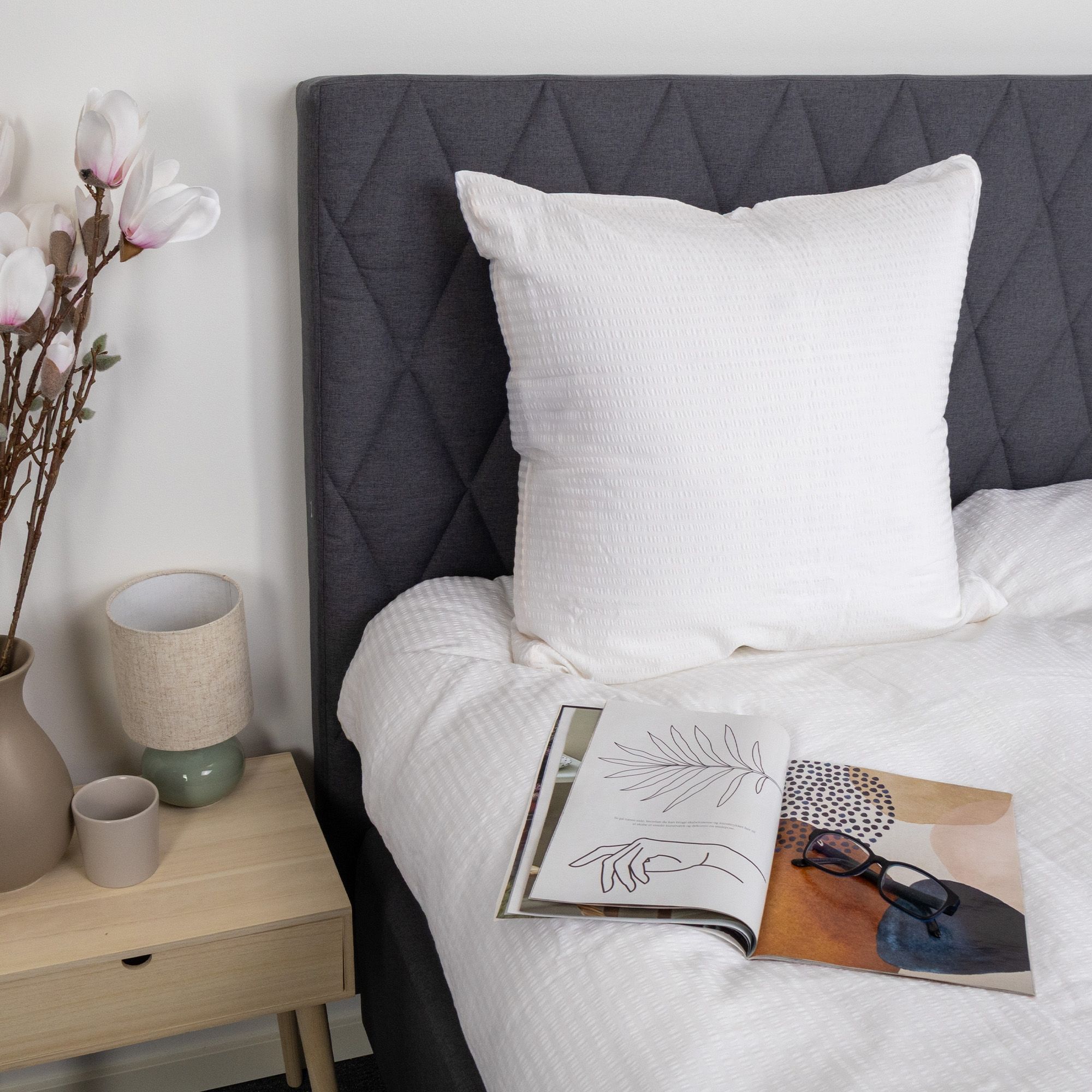 Bæk og bølge vævningen danner små luftlommer i stoffet, hvilket gør sengetøjet ekstra åndbart og let at sove i. Overfladen føles køligere mod huden end traditionelt glat sengetøj og er derfor særligt velegnet til varme nætter eller til dig, der ofte får det varmt, når du sover. Samtidig bevarer bomulden sin naturlige blødhed og evne til at absorbere fugt, så du får en behagelig og tør sovekomfort.