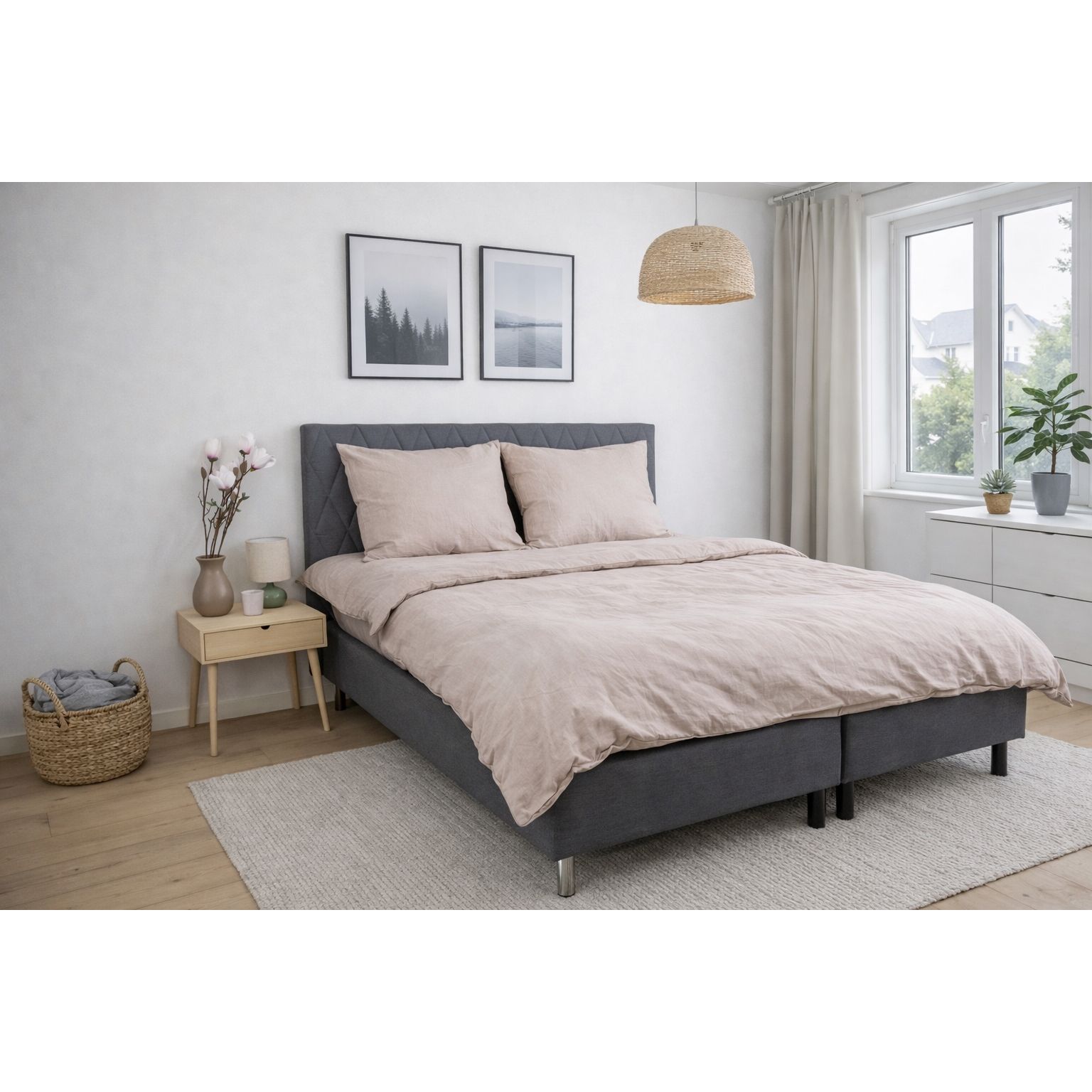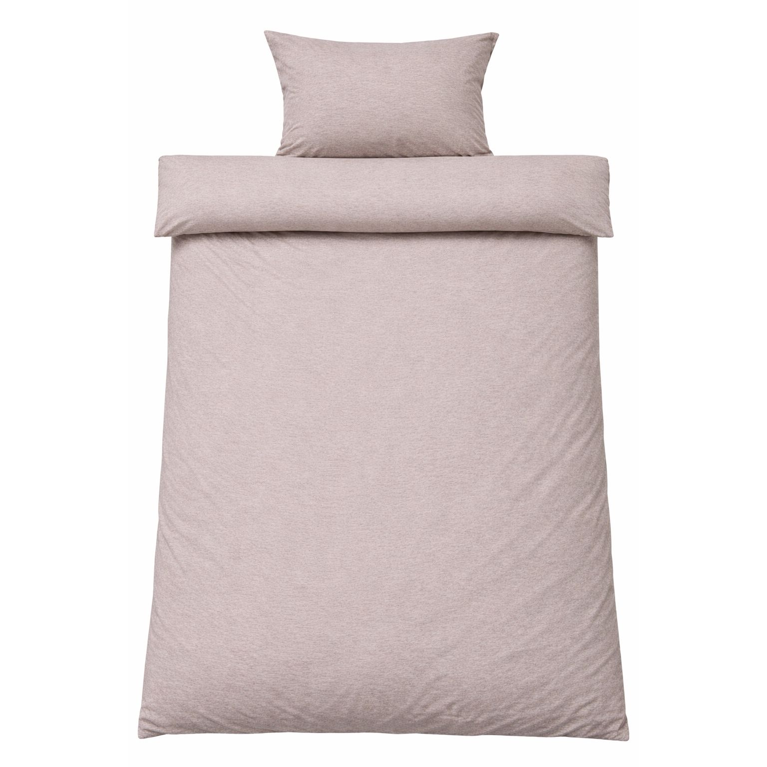 Dyne- og pudebetræk lukkes begge med indvendig lynlås, som gør det nemt at skifte sengetøj og sikrer, at dynen og puden bliver på plads hele natten. Den grå melerede farve skaber et roligt og naturligt udtryk, der passer godt ind i både moderne og klassiske soveværelser.
