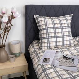 Det ternet design kombinerer flotte blå tern med en lys baggrund, hvilket skaber et roligt og harmonisk udtryk i soveværelset. Et ternet sengetøj, der både føles lunt og ser elegant ud.