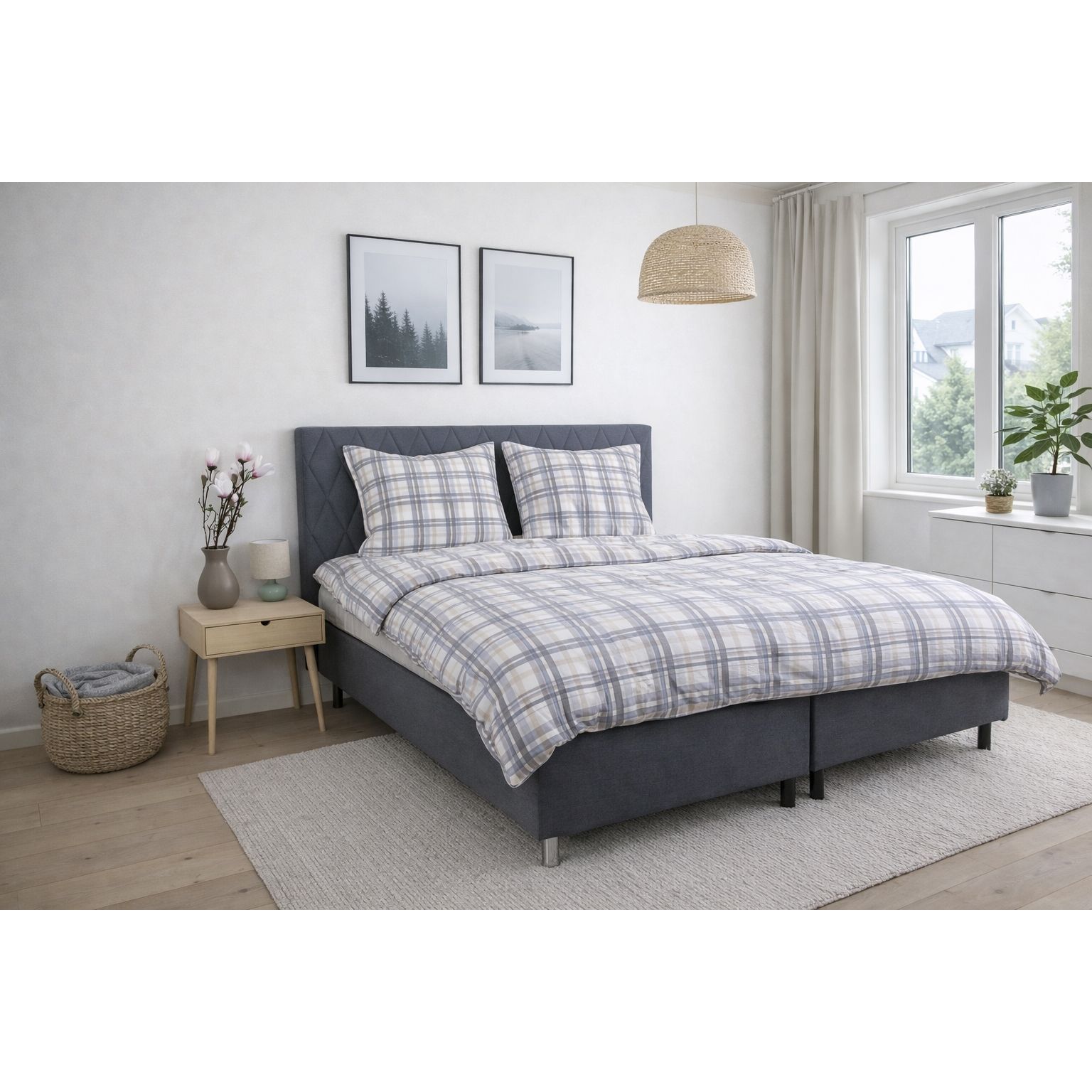 Skab en hyggelig og indbydende stemning i soveværelset med dette ternet flonel sengetøj i beige med blå detaljer. Den bløde bomuldsflonel giver en lun og behagelig komfort - perfekt til kølige nætter.