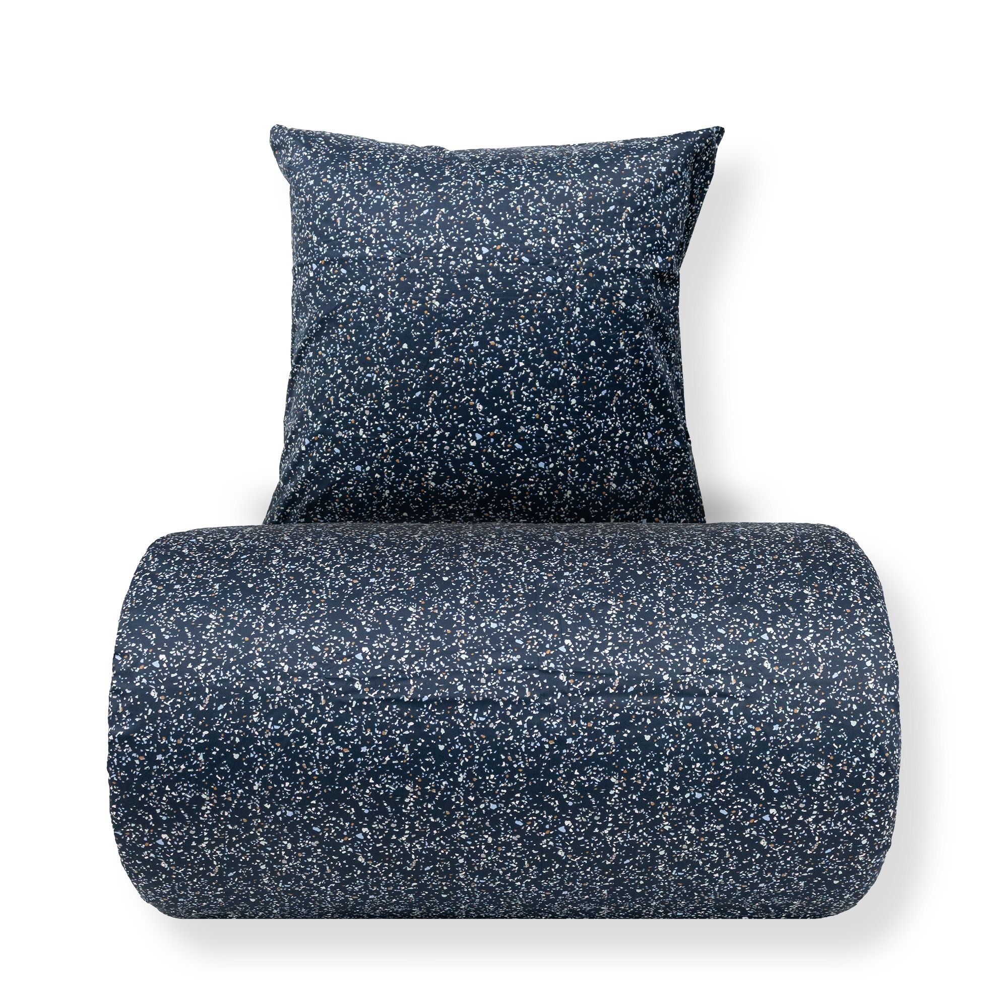 Sengetøj - Bomuldssatin - Blåt marble/prikket print