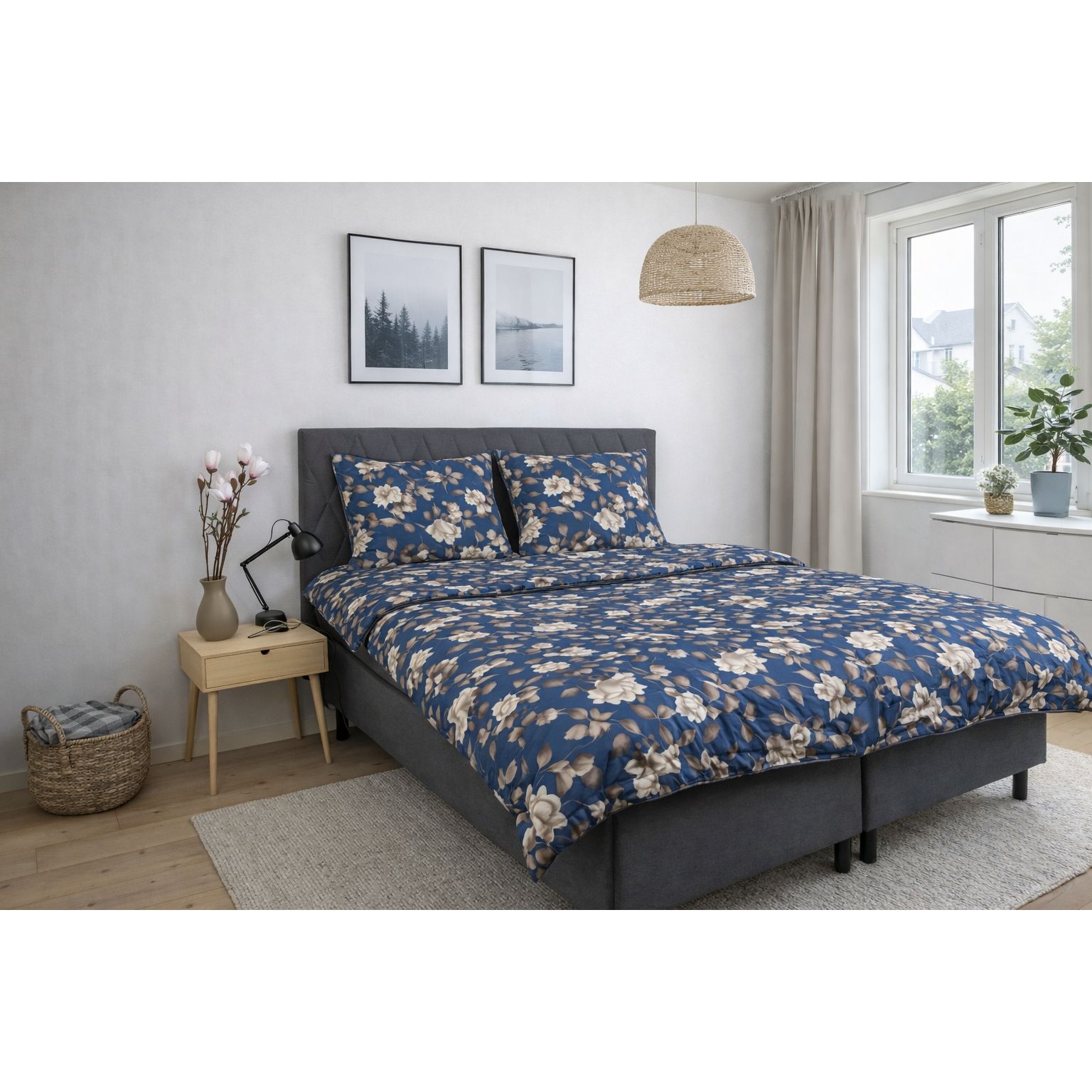 Sengetøj - bomuldssatin - Blossom blue - Blomster print