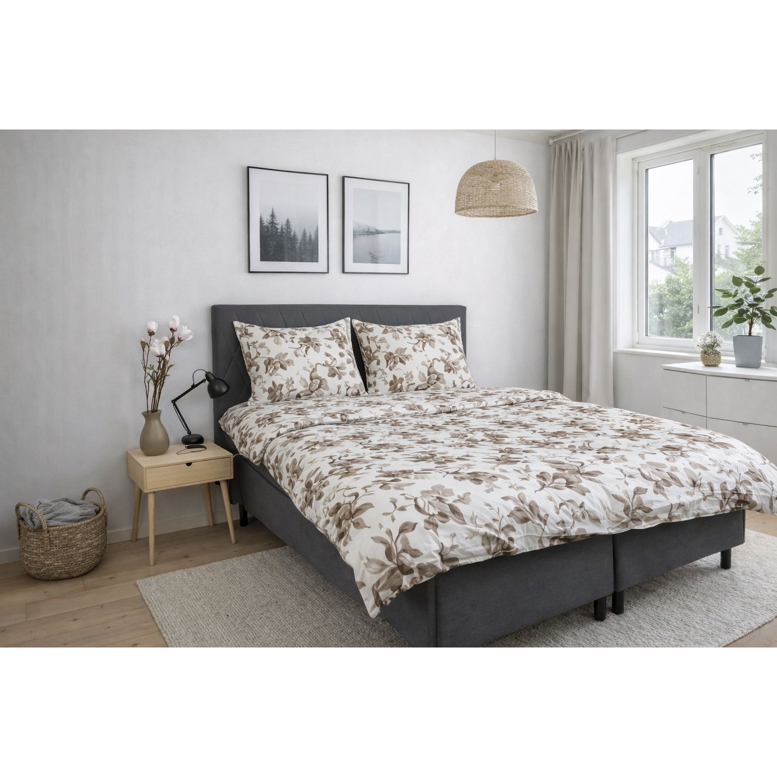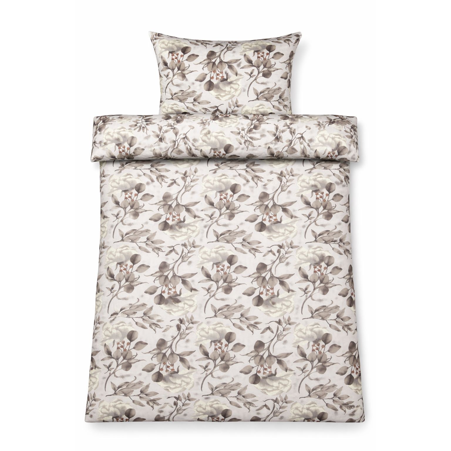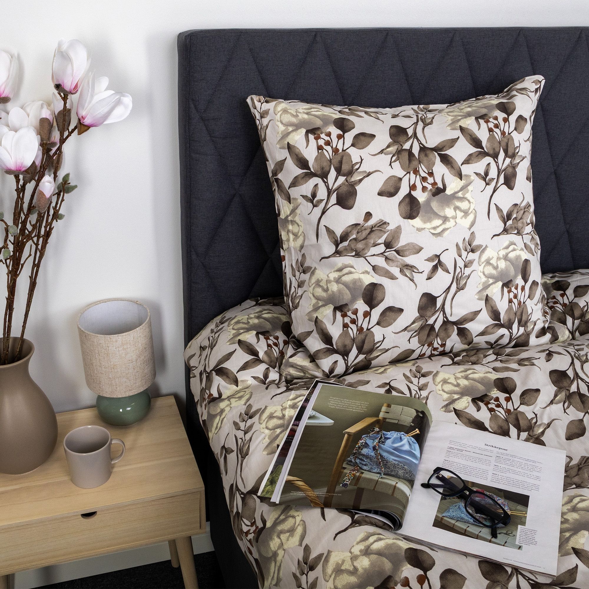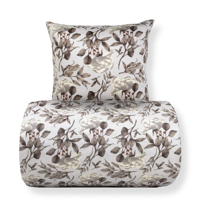 Sengetøj - bomuldssatin - Blossom grey - Blomster print