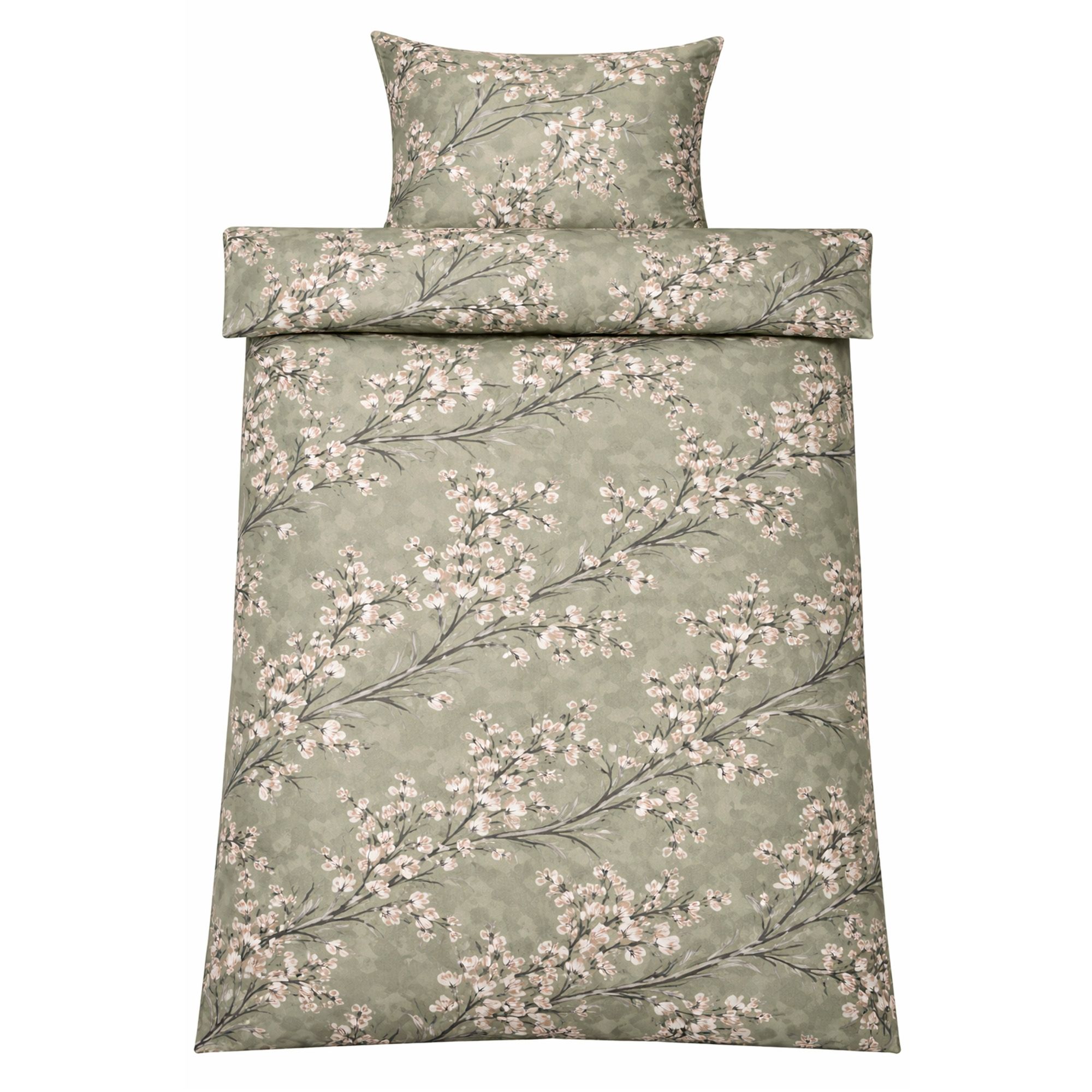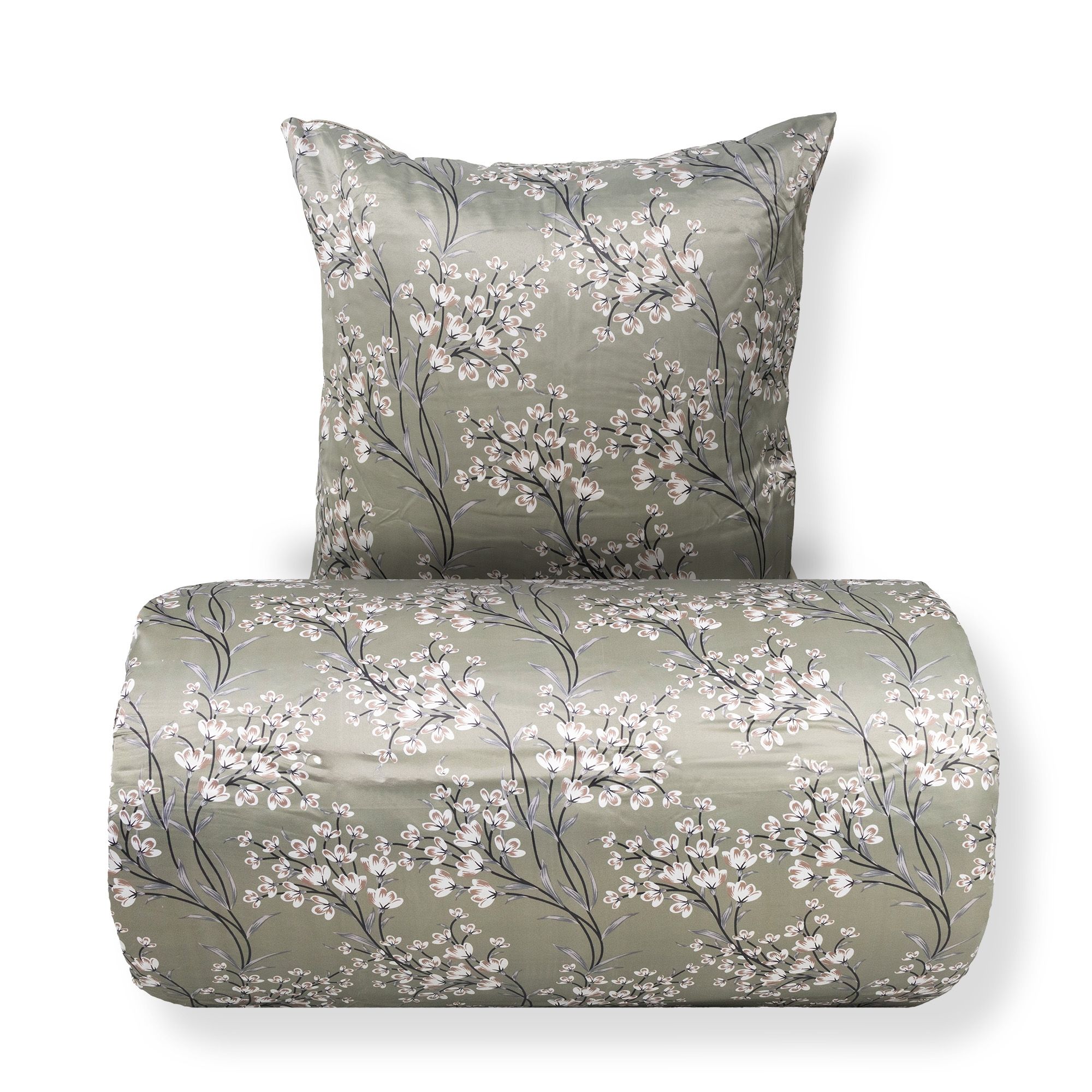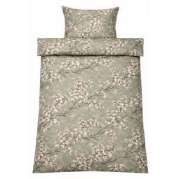 Sengetøj - Satin - Grønt vendbart blomstret design