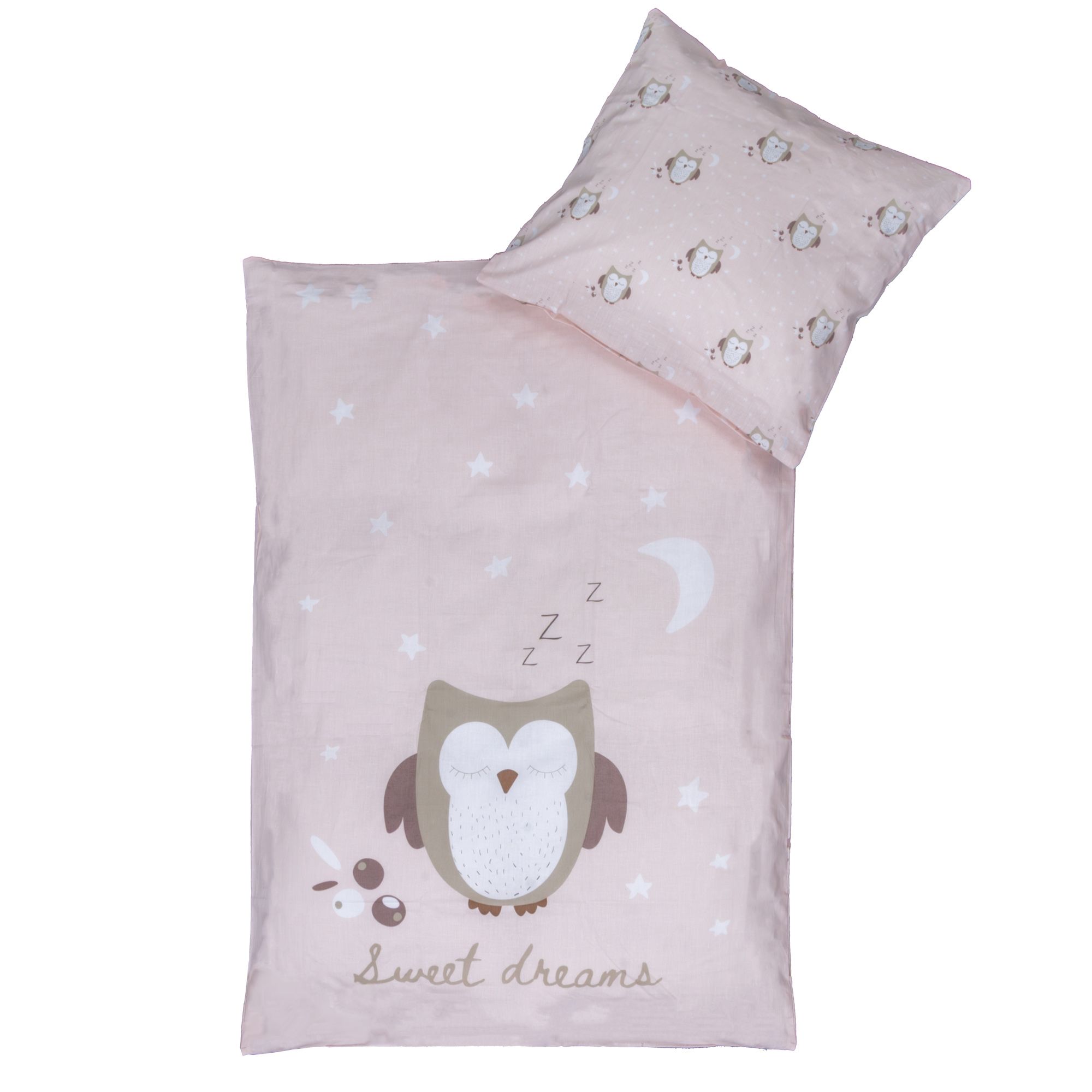 Sengetøjet er designet med et skønt motiv af en sovende ugle og teksten Sweet Dreams forsiden og på bagsiden er der et all-over print af små uglemotiver.  Baby sengetøjet passer til en almindelig babydyne størrelse og kan bruges i sengen, i babynesten, i barnevognen eller hvor end dynen medtages. Babydynen er ofte fast omkring barnet i mange af døgnets timer, da den skaber stor ro, genkendelighed, tryghed og varme for babyen - ikke kun den første tid, men ofte op til 2-3 års alderen. Det bruges derfor rigtig meget og bliver vasket ofte, og derfor ønsker de fleste også blødt sengetøj i bomuld af høj kvalitet.