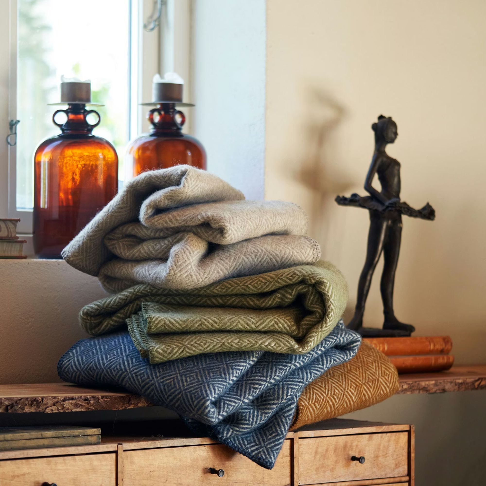 Det klassiske Diamonds mønster tilfører et stilrent og elegant udtryk, mens den varme honningfarve skaber en indbydende og hyggelig stemning i hjemmet. Plaiden passer perfekt ind i moderne nordisk indretning og kan bruges både som et funktionelt tæppe og et dekorativt element.