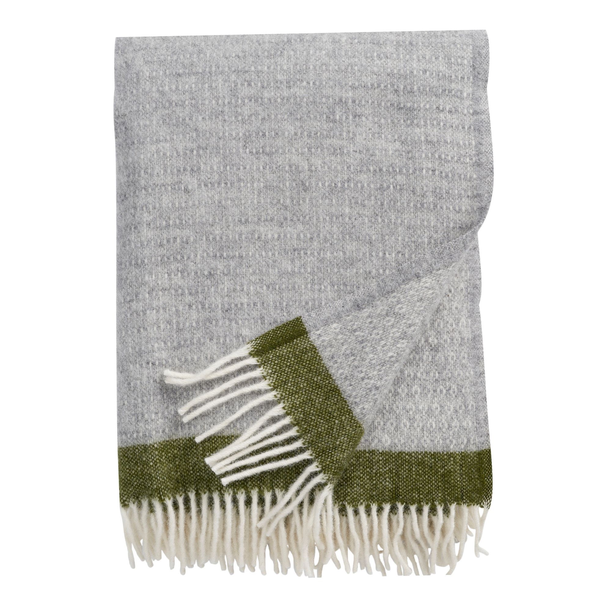 Den stilrene farvekombination i grå og grøn giver et roligt og harmonisk udtryk, der passer perfekt ind i moderne skandinavisk indretning. Plaiden fungerer både som et praktisk tæppe og som en dekorativ detalje, der tilfører varme og personlighed til hjemmet.