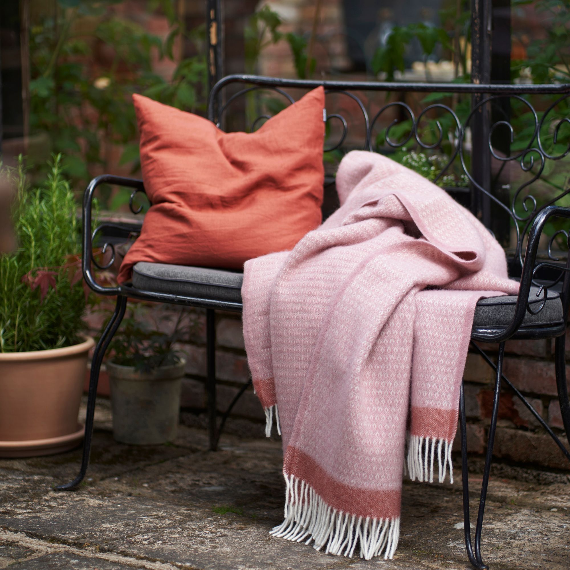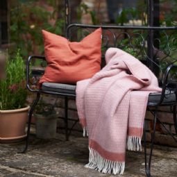 Det elegante og tidløse mønster kombineret med den smukke rosa farve skaber et roligt og harmonisk udtryk, der passer perfekt ind i moderne skandinavisk indretning. Plaiden fungerer både som et praktisk tæppe og et dekorativt element, der tilfører varme og hygge til hjemmet.