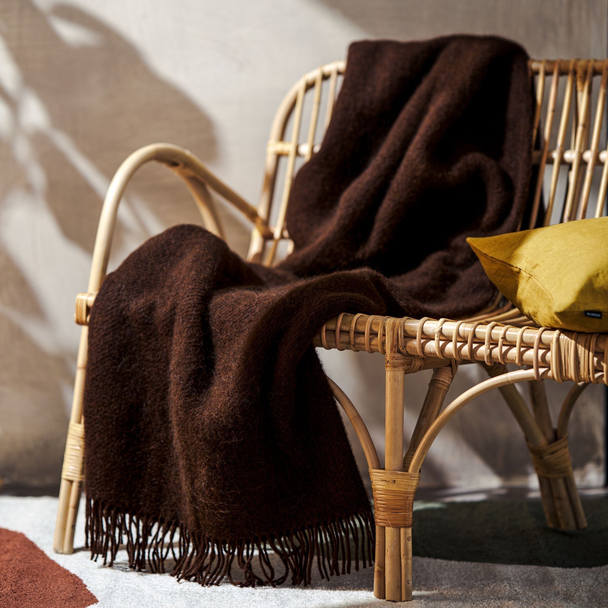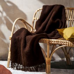 Det stilrene ensfarvet design i mørkebrun tilfører hjemmet et roligt og indbydende udtryk og passer perfekt ind i moderne skandinavisk indretning. Brug plaiden i sofaen, i lænestolen, på sengen eller tag den med ud på terrassen, når temperaturen falder.