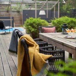 Det elegante og tidløse mønster kombineret med den smukke gule farve skaber et roligt og harmonisk udtryk, der passer perfekt ind i moderne skandinavisk indretning. Plaiden fungerer både som et praktisk tæppe og et dekorativt element, der tilfører varme og hygge til hjemmet.