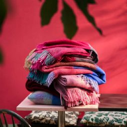 Det stilrene ternede mønster i lyserød og blå tilfører hjemmet et roligt og indbydende udtryk og passer perfekt ind i moderne skandinavisk indretning. Brug plaiden i sofaen, i lænestolen, på sengen eller tag den med ud på terrassen, når temperaturen falder.