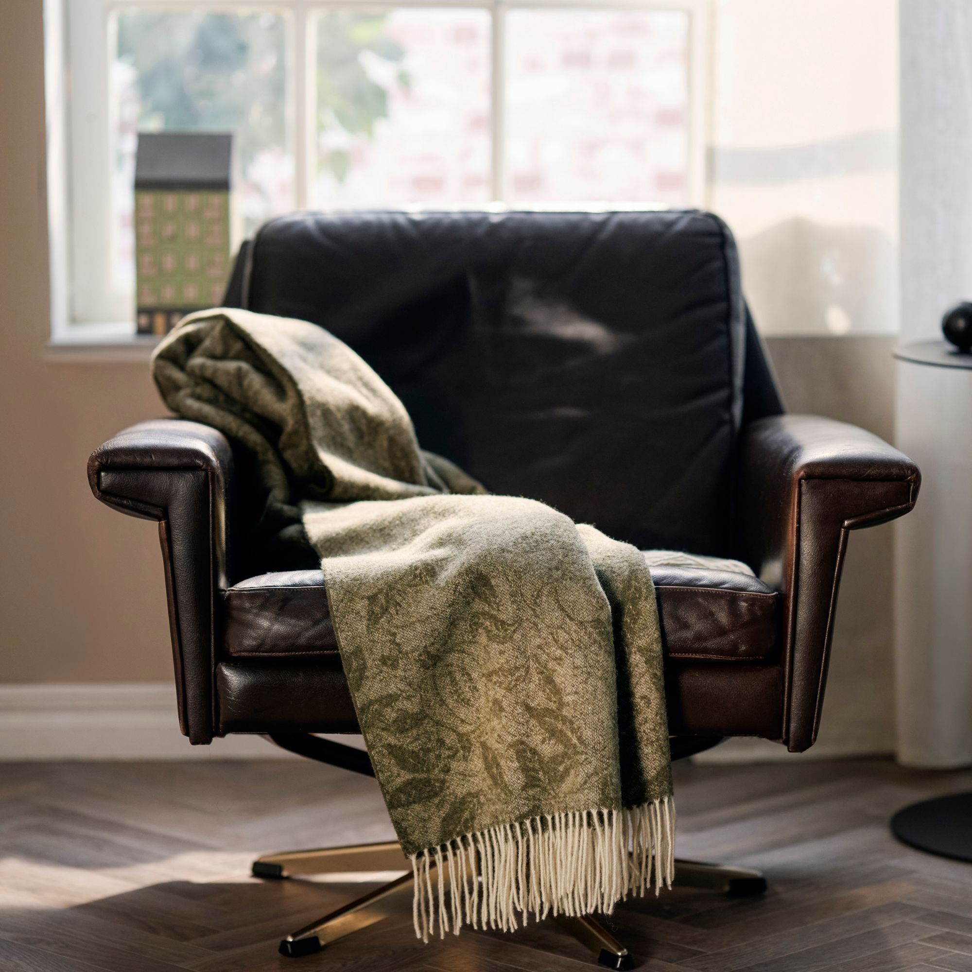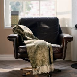 Det unikke motiv tilfører et legende og dekorativt element til indretningen, mens de grønne og brune nuancer skaber et naturligt og harmonisk look. Plaiden passer perfekt ind i moderne nordisk boligstil og fungerer både som et funktionelt tæppe og en smuk detalje.