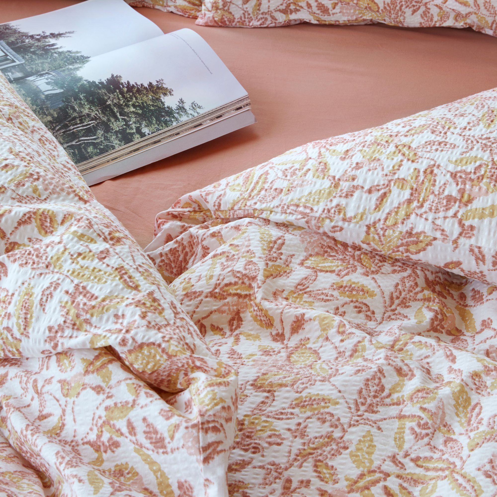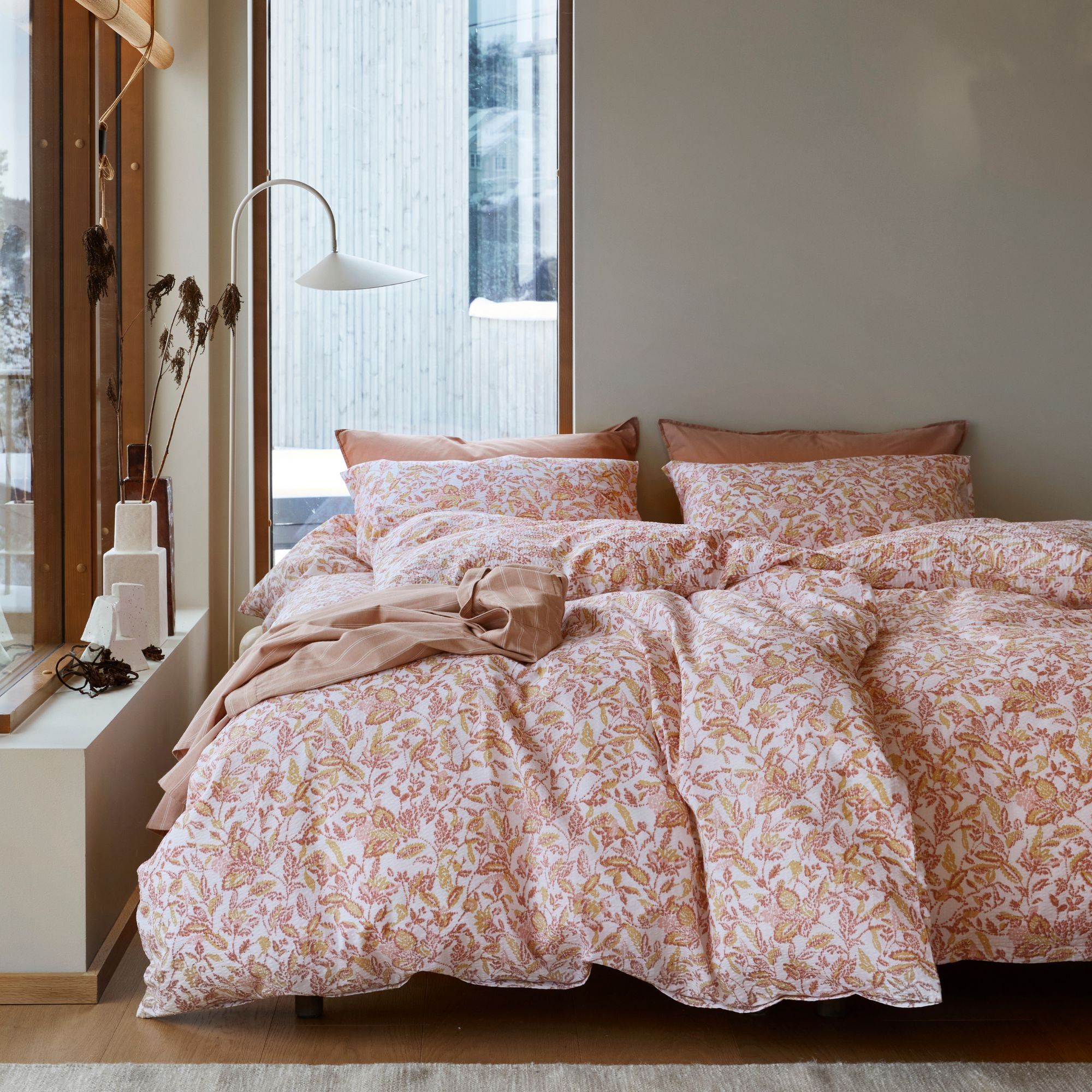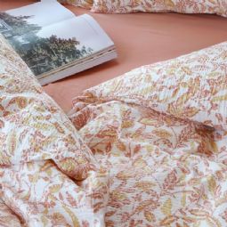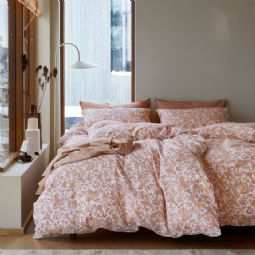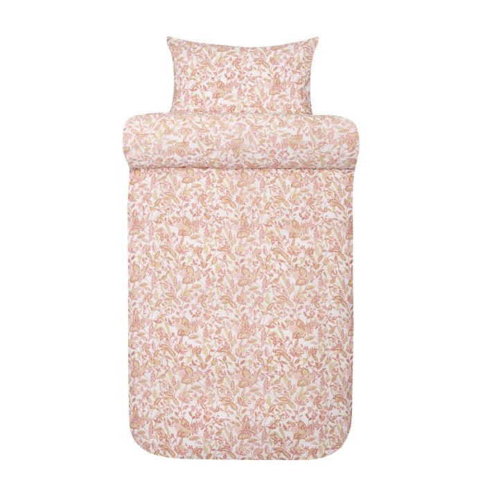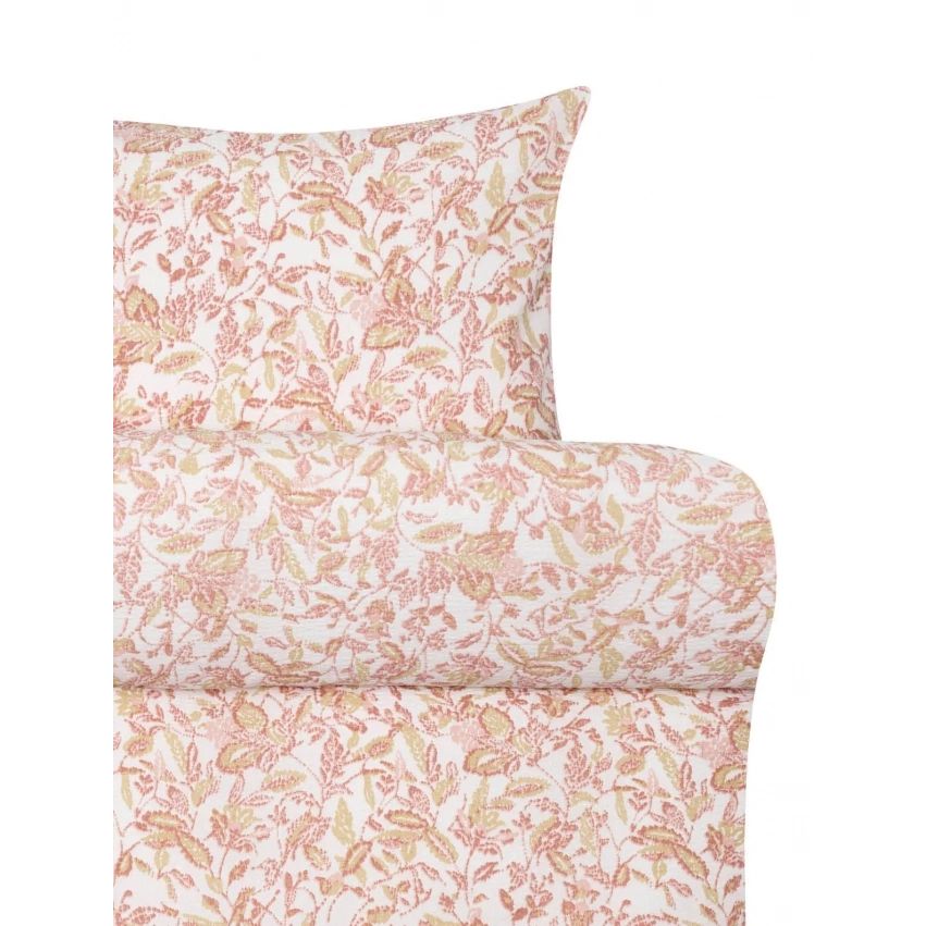 Vævet krepp sengetøj 140x200 cm - Lyserød sengesæt med blade - 100% blød bomuld - Bæk og bølge sengelinned - Barbro Høie Of Scandinavia