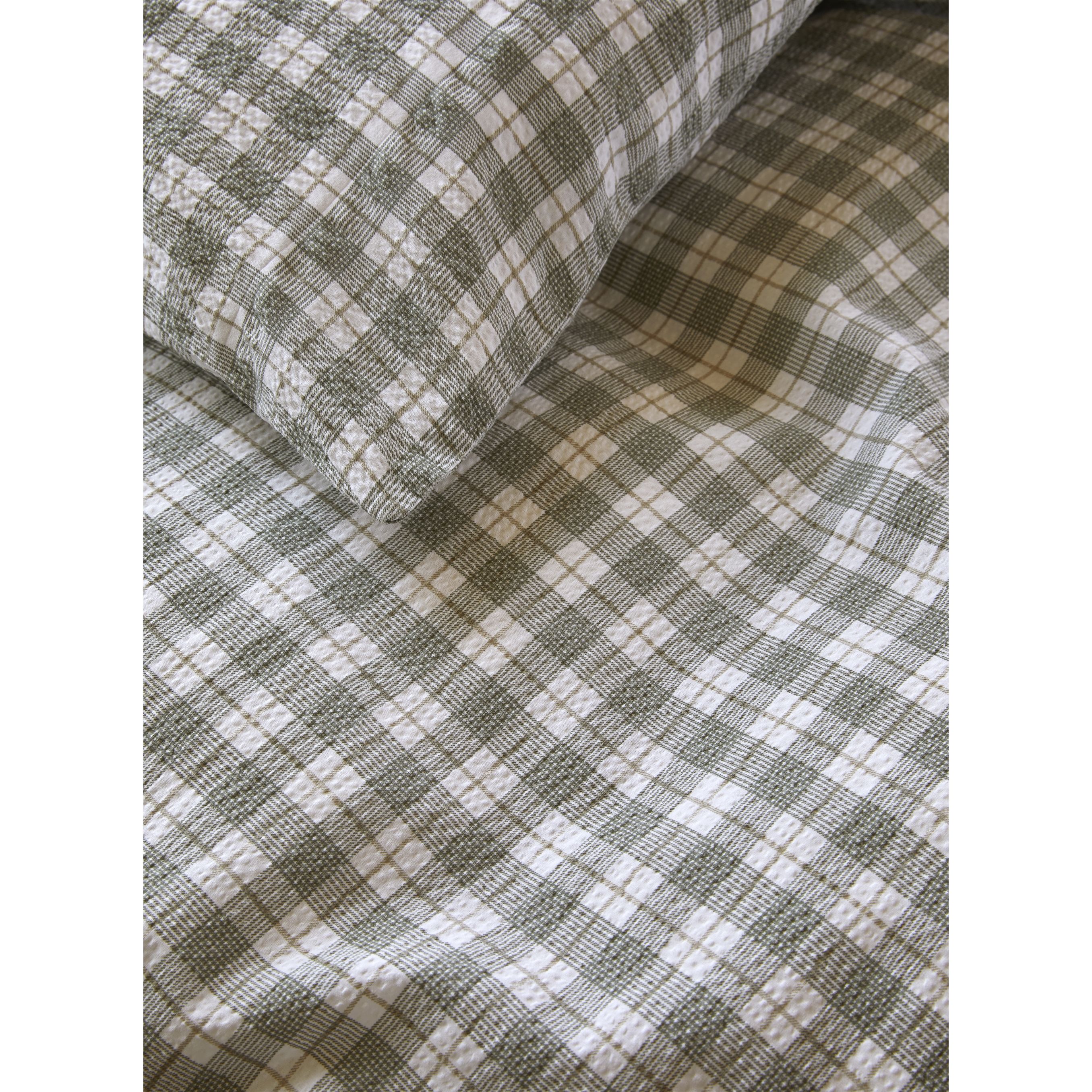Vævet krepp sengetøj - 100% blød bomuld - Grøn med tern - Bæk og bølge sengelinned - Kyrre Høie Of Scandinavia